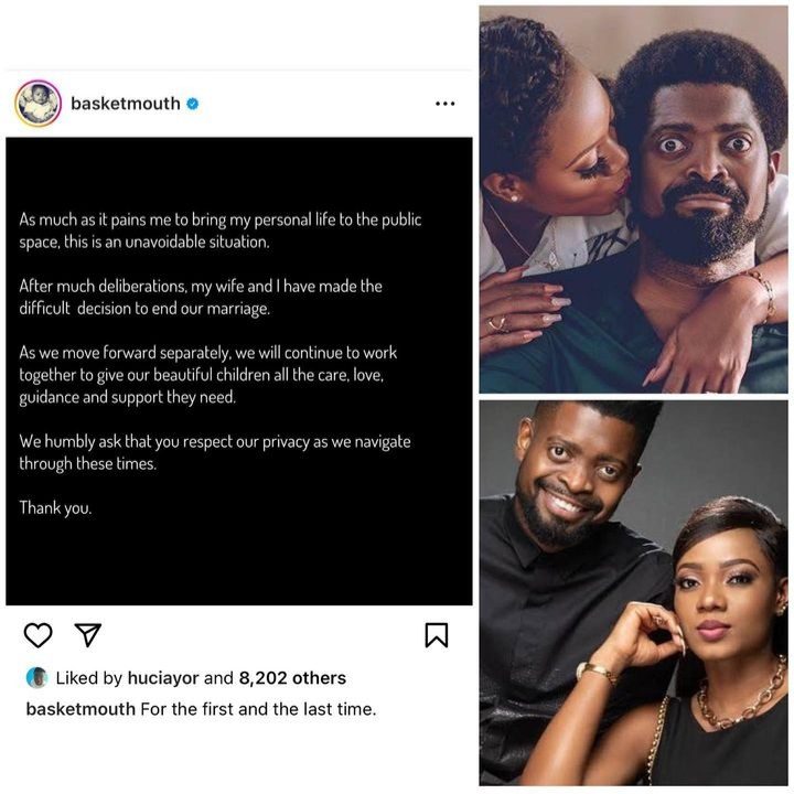 BREAKING NEWS: Nigerian comedian, Basketmouth announces his separation from wife