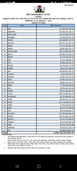 From the DMO’s record, which is under Adedeji’s party-controlled central government, Osun’s debt profile, be it local or external debt, has seen a significant reduction under Governor Adeleke. By December 31, 2022, only a few days after Governor Adeleke assumed office, the DMO put the state’s domestic debt was N148bn. A year after, precisely December 31, 2023, the debt value has shed about N4bn, as it stood at N144bn. By March 31, 2024, the DMO recorded a local debt profile of N87bn for Osun state, indicating that the state had cut its debt by N57bn.